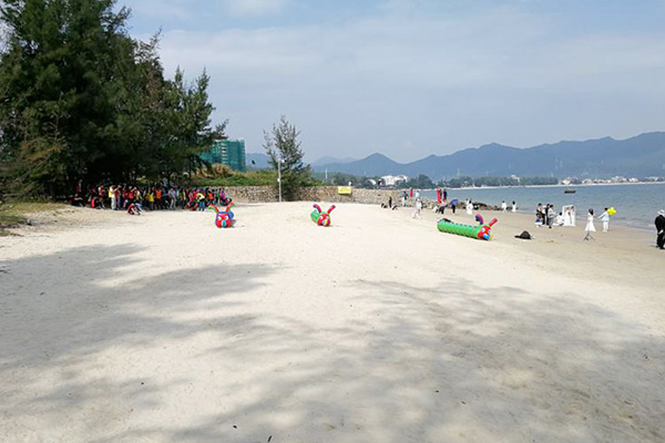 深圳大鹏共青团委拓展基地位于水头银滩路1号,基地环境优美,配套齐全有,山有水,景色怡人,是深圳唯一一处同时拥有海边沙滩和后山树荫的培训基地,是高端培训(会议、拓展、野战、沙滩),以及休闲娱乐的好场所。基地约5万平方米,水泥硬底约2万平方米,海边沙滩长约400米有1.5万平方米,后山树荫约5000平方米。基地可同时容纳1000人拓展训练,500人野炊,200人野战,100人烧烤,300人会议,后山距离海边沙滩约30米,几乎全部为大树荫覆盖,并安装了120平方米的风雨棚,以及安装标准高度的毕业墙、背摔台等等。