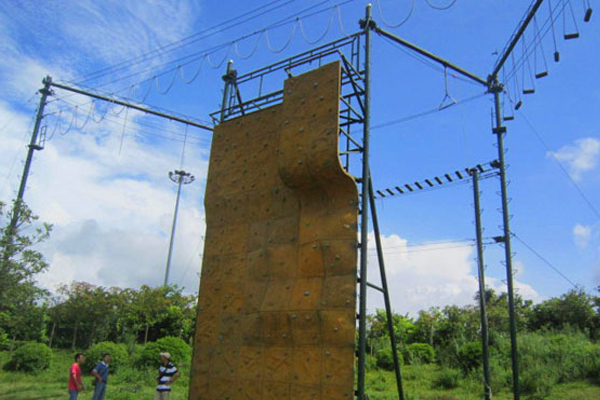 基地拓展训练场占地面积五千平方米,拥有两组主体高空训练架、基地可同时容纳800人参训,拓展基地高空器械形状为:七面体组合型训练器械,基地采用国际挑战者协会的户外拓展器械标准12M高规格,固定项目宽度5.6M,通过项目宽度8.6M以上。所有场地项目,全部按目前国际最新标准设计。所有保护系统是国际国内最新的独立双保险保护系统。基地绿草茵茵,空气清新是拓展培训亲近自然的首选之地。